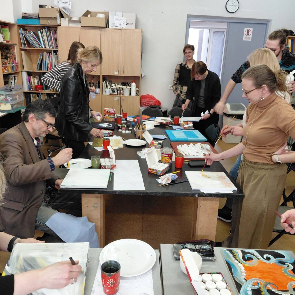 11.martā Siguldas novada vizuāli plastiskās mākslas pedagogi tikās Mālpilī, lai apgūtu jaunas prasmes, iedvesmotos viens no otra, jo meistardarbnīcu vadītāji bija paši Mākslu skolu pedagogi. Mūsu skolotāja Dace Pudāne vadīja T kreklu apdrukas darbnīcu