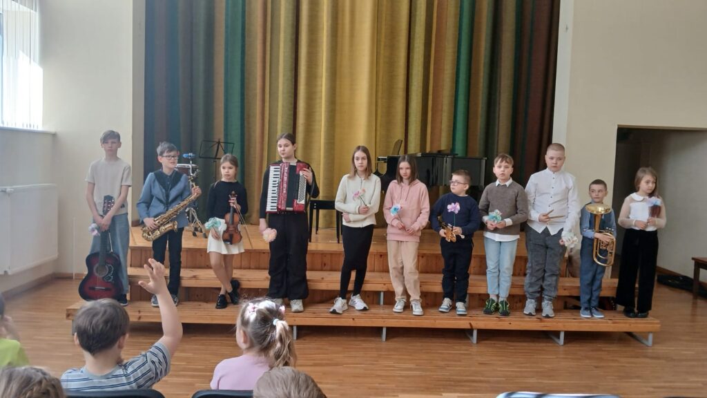 Tika demonstrēti dažādi mūzikas instrumenti- vijole, ģitāra, klavieres, akordeons, flauta, klarnete, saksofons, eifonijs, trompete, bungas. Katrs solists saņēma bērnu darinātu ziedu, par ko pateicamies viņu skolotājām!