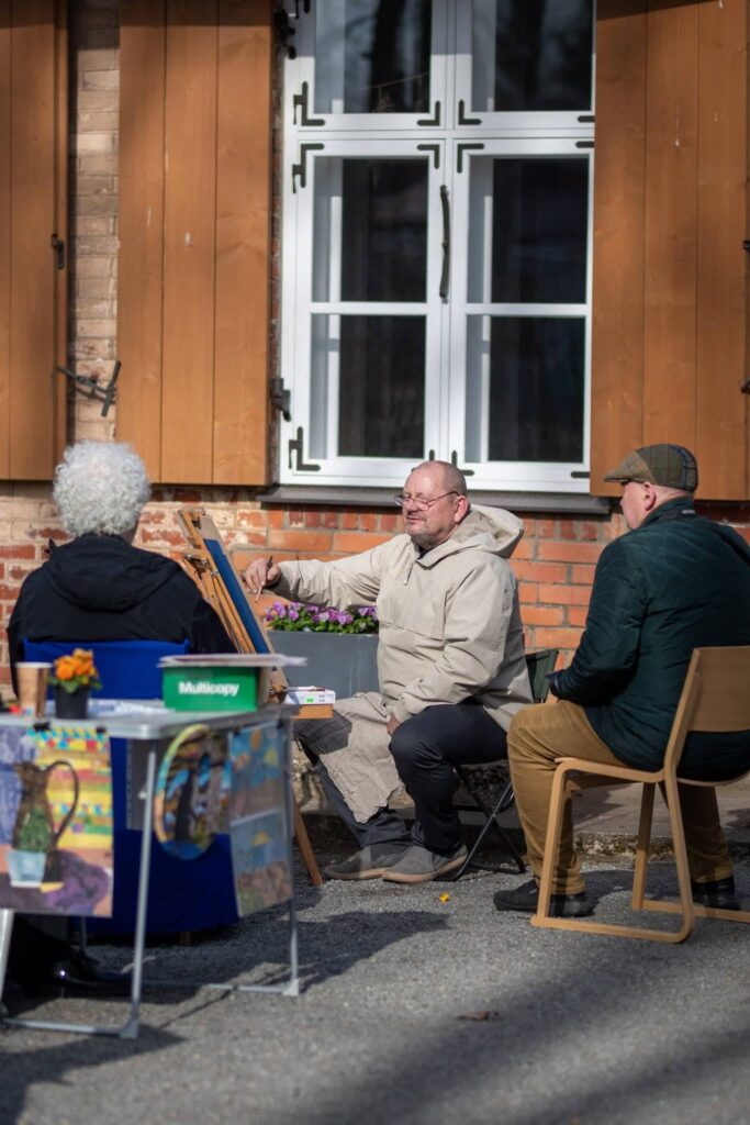 Pie Inčukalna Kopienas centra “Vecais pasts” tapa īsts radošais kvartāls – “MĀKSLAS PAGALMIŅŠ”, kur rosījās mākslinieki, tai skaitā arī mūsu pedagogs Elmārs Gaigalnieks, kurš radīja portretus.